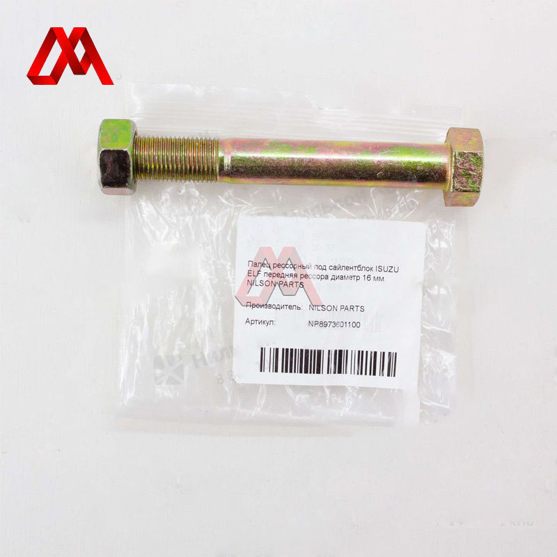 Αρχικός πείρος ελατηρίου 8973601100 για ISUZU ELF από τον κατασκευαστή ISUZU. Διαστάσεις: διάμετρος 16 mm. Ο πείρος ελατηρίου συνδέει το μάτι του ελατηρίου με το βραχίονα του ελατηρίου του οχήματος μέσω ενός σιλέντ μπλοκ ή ελαστικών δακτυλίων. Κατά τη λειτουργία του οχήματος, όλοι οι πείροι ελατηρίου υπόκεινται σε σημαντικά μηχανικά φορτία, καθώς και σε έκθεση σε αρνητικούς περιβαλλοντικούς παράγοντες, γεγονός που οδηγεί στην έντονη φθορά, παραμόρφωση και διάβρωσή τους. Για αντικατάσταση θα πρέπει να χρησιμοποιούνται μόνο οι πείροι και τα εξαρτήματα που συνιστά ο κατασκευαστής του οχήματος. Διαστάσεις συσκευασίας: 3 * 3 * 15 cm Βάρος συσκευασίας: 241 g